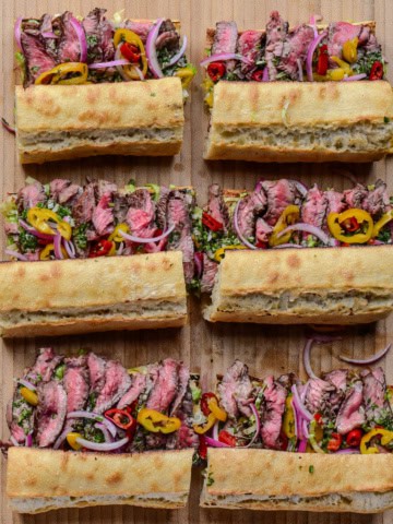 Flank Steak with Street Corn Mayo on Garlic Toast