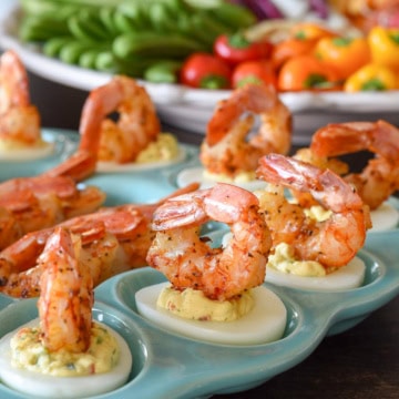 Deviled Eggs with Shrimp. This Easter, impress your guests with grilled wild caught Argentinian shrimp on creamy deviled eggs.